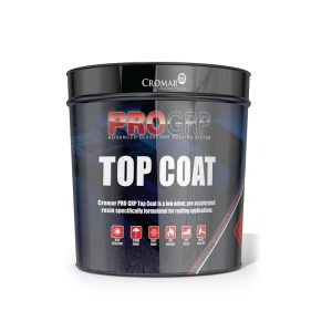 Cromar PRO GRP Topcoat is a Fire Retardant Dark Grey, pre-pigmented, isophthalic acid-based, filled fire-retardant roofing top coat.