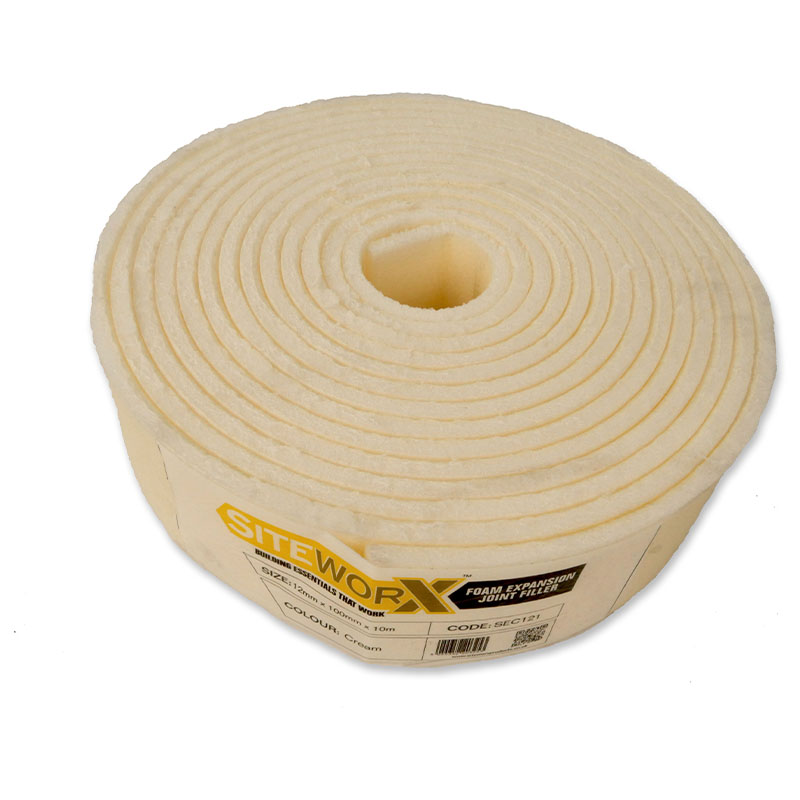 Pack of 10 x SITEWORX Cream Foam Expansion Joint Strip 10mm x 100mm x 10m