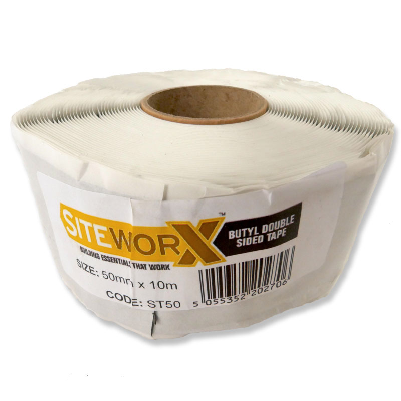 Pack of 12 x SITEWORX Butyl Double Sided Tape – 50mm x 10m