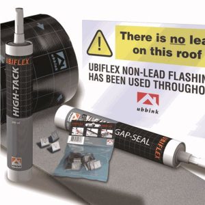 Ubiflex is a non-lead flashing material which can be used in most applications where lead is traditionally installed. Ubiflex is environmentally friendly, non-toxic and recyclable. Ubiflex is only of value to the installer; it has no re-sale value as scrap. Available in grey or red. Ubiflex B3 is suitable for use in a variety of applications such as cover flashings, step flashings, rooflite flashings, conservatory flashings and more. Ubiflex is the only flexible non-lead flashing on the market with a BBA certificate for general use and a BRE wind tunnel test with Ubiflex B3 surrounding a chimney and sealed with Ubiflex Gap Seal, demonstrated that the flashing will resist wind speeds of up to 110mph (49m/s) without failing.